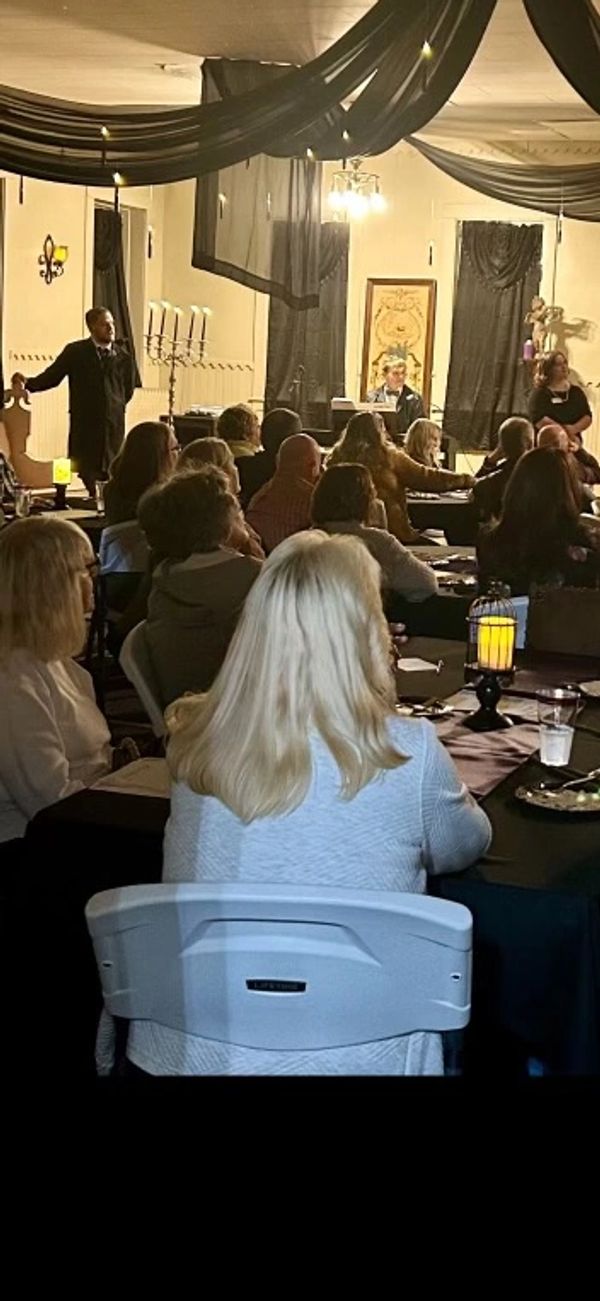 Come get your mocktails, eat a delicious meal and experience the show of a lifetime! Who was the buried skeleton? Why was the lady of the house left at her alter? Who did the murder?